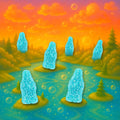 - Bright blue, chewy texture