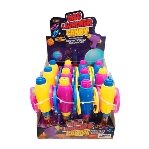 - 12ct box of R L Albert & Son Disc Launcher candy toys
