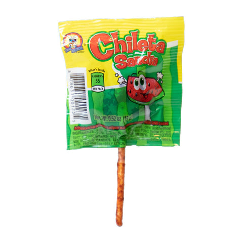 Azteca Chileta Sandia (40ct) blends classic Mexican spice with watermelon candy on a stick—sweet, sour, and chile-coated fun.