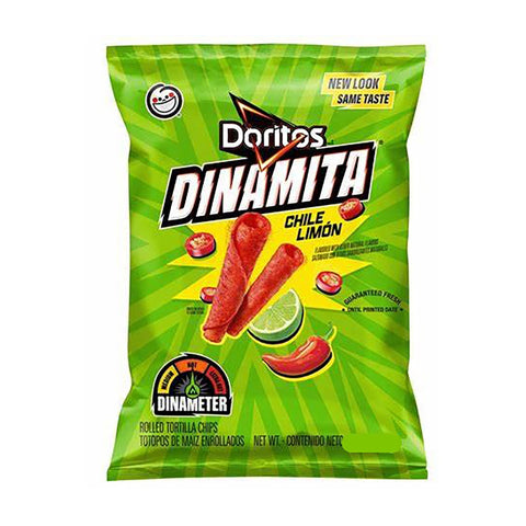 Dinamita Chili Limon Doritos are rolled tortilla chips that burst with chili heat and tangy citrus flavor. Intense and crunchy.