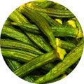Lightly crisped whole okra pods retain natural flavor and texture. A gourmet veggie snack perfect for upscale mixes and shelf appeal.