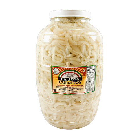 La Joya's 11lb jar of cueritos (pickled pork skin) is perfect for bulk prep or foodservice. Bold, tangy, and iconic in Latin cuisine.