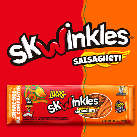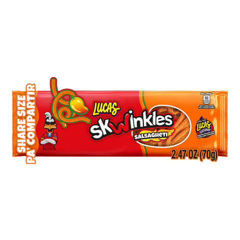 Lucas Salsaghetti King Size Mango is the ultimate sweet-heat experience—mango “spaghetti” candy strands covered in tangy tamarind sauce with chile mango topping for a spicy, saucy, fruity treat.