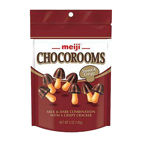 Chocorooms feature mushroom-shaped cookie stems topped with a rich chocolate cap. A quirky, craveable favorite in Japanese snack culture.