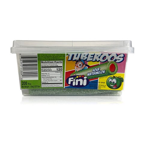 Fini Tuberoos Watermelon (200ct Tub) combines soft green chew with watermelon flair and creamy center—bright, bold, and full of sweet surprises.